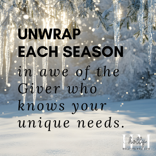 Seasons don’t take God by surprise. You don’t need to have everything in your life figured out and perfected to come to Him, either. And am I thankful for that! One of my favorite hymns tells us we can come to God exactly as we are! Matthew 11:28 tells us, “Come to Me, all you who labor and are heavy-laden and overburdened…” So when I’m overwhelmed, have neglected something important, or am tired of pressing forward, He welcomes me to lean into Him for strength, rest, and peace.