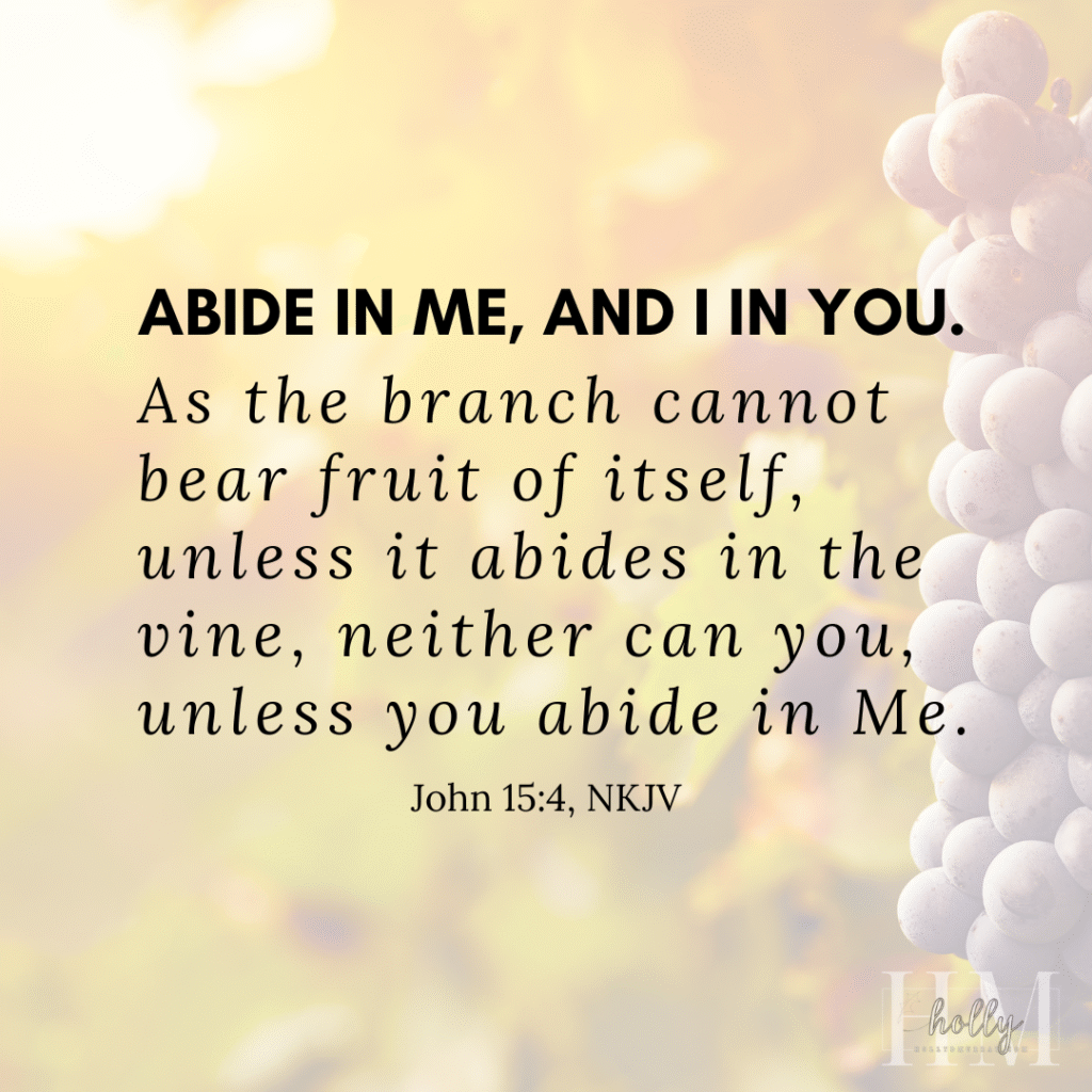 Abide in Me, and I in you. As the branch cannot bear fruit of itself, unless it abides in the vine, neither can you, unless you abide in Me.